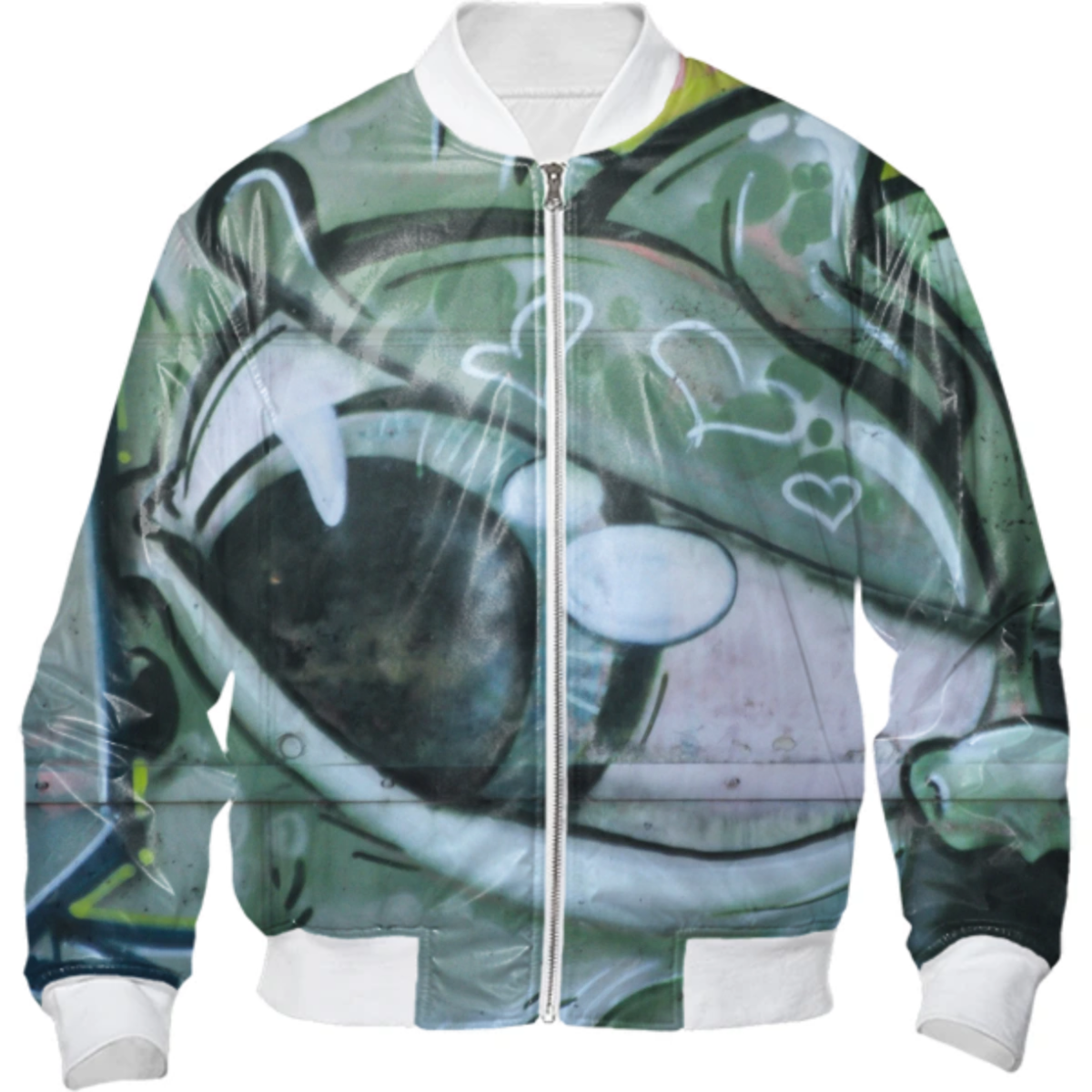 Light weight bombr jacket with your choice of white or black ribbing slight padding zip up front and side pockets. The inside is adorned with PAOM straps for swinging over your shoulders so you dont have to hold it.
