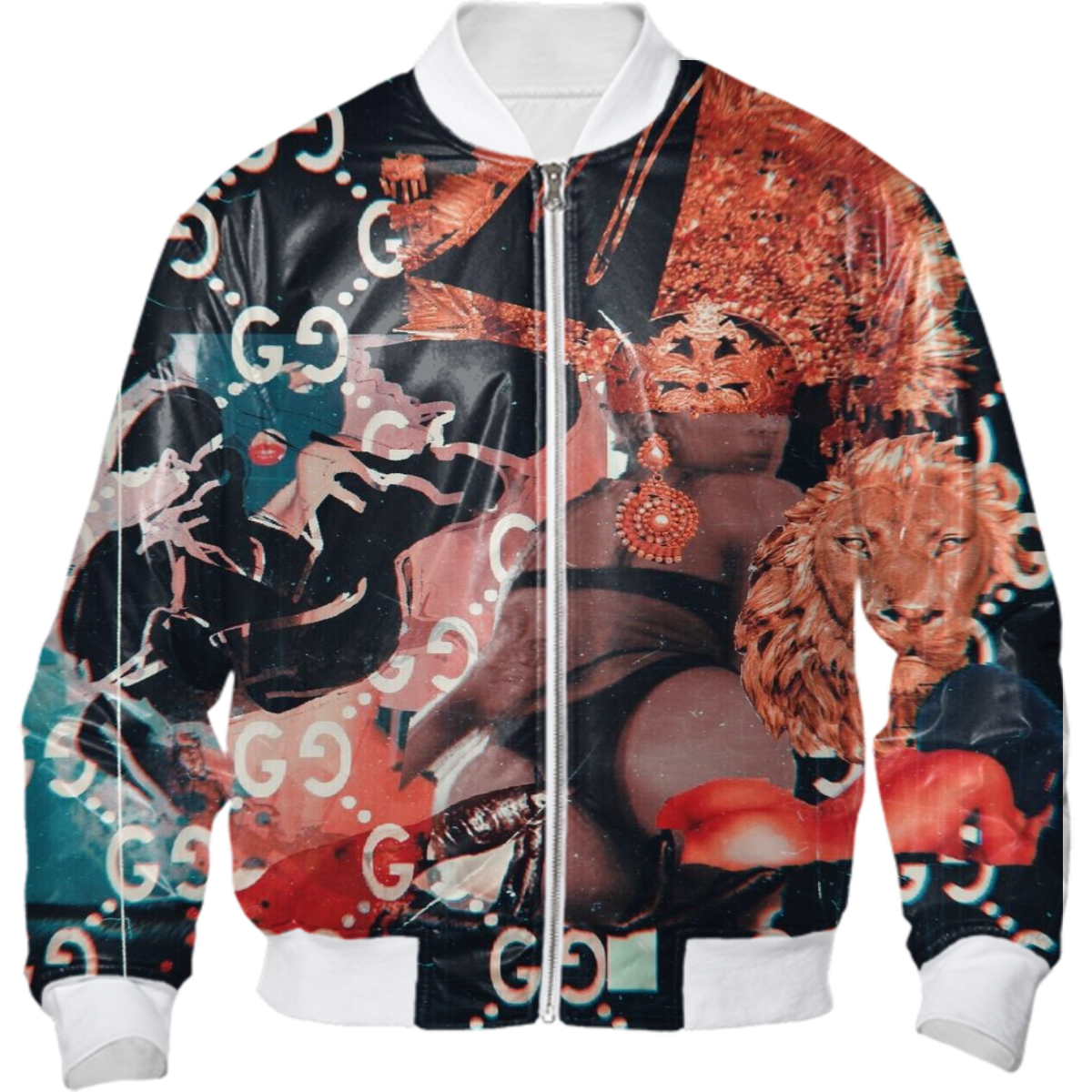 Light weight bombr jacket with your choice of white or black ribbing slight padding zip up front and side pockets. The inside is adorned with PAOM straps for swinging over your shoulders so you dont have to hold it.