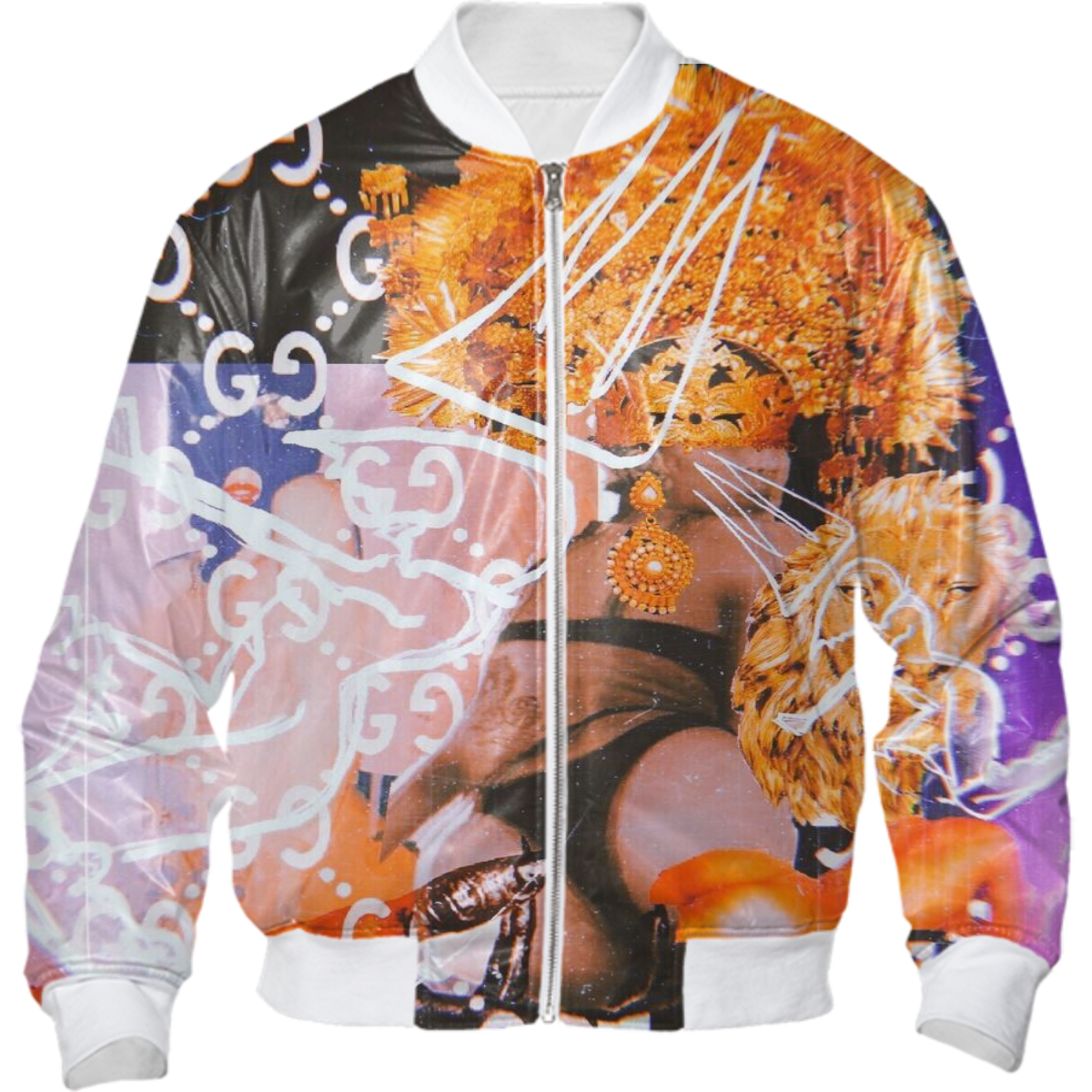 Light weight bombr jacket with your choice of white or black ribbing slight padding zip up front and side pockets. The inside is adorned with PAOM straps for swinging over your shoulders so you dont have to hold it.