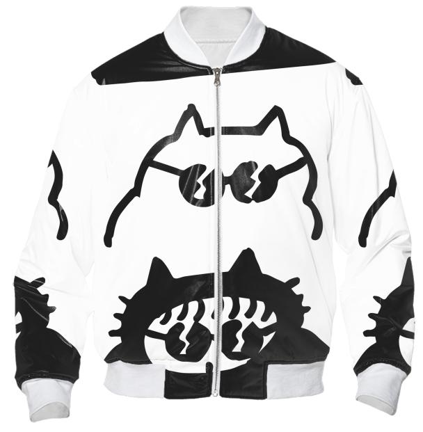 Light weight bombr jacket with your choice of white or black ribbing slight padding zip up front and side pockets. The inside is adorned with PAOM straps for swinging over your shoulders so you dont have to hold it.