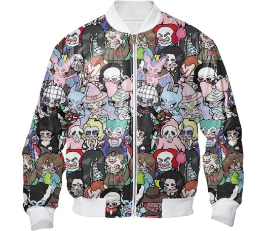 Light weight bombr jacket with your choice of white or black ribbing slight padding zip up front and side pockets. The inside is adorned with PAOM straps for swinging over your shoulders so you dont have to hold it.