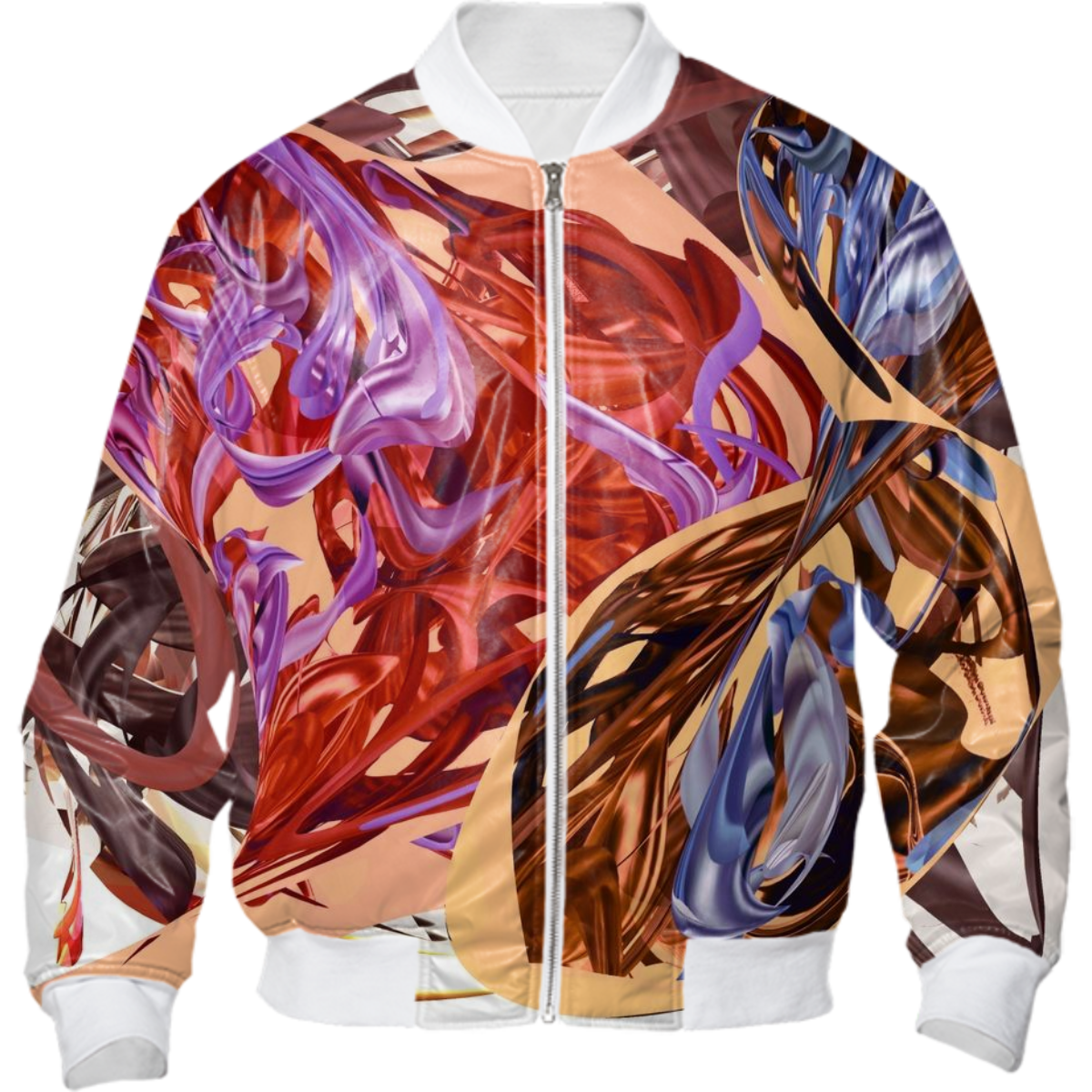Light weight bombr jacket with your choice of white or black ribbing slight padding zip up front and side pockets. The inside is adorned with PAOM straps for swinging over your shoulders so you dont have to hold it.