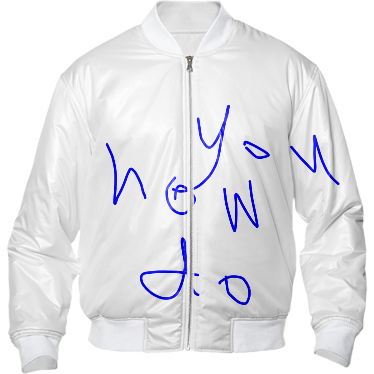 Light weight bombr jacket with your choice of white or black ribbing slight padding zip up front and side pockets. The inside is adorned with PAOM straps for swinging over your shoulders so you dont have to hold it.