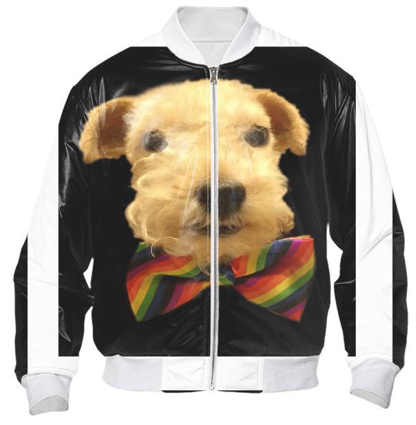 Light weight bombr jacket with your choice of white or black ribbing slight padding zip up front and side pockets. The inside is adorned with PAOM straps for swinging over your shoulders so you dont have to hold it.