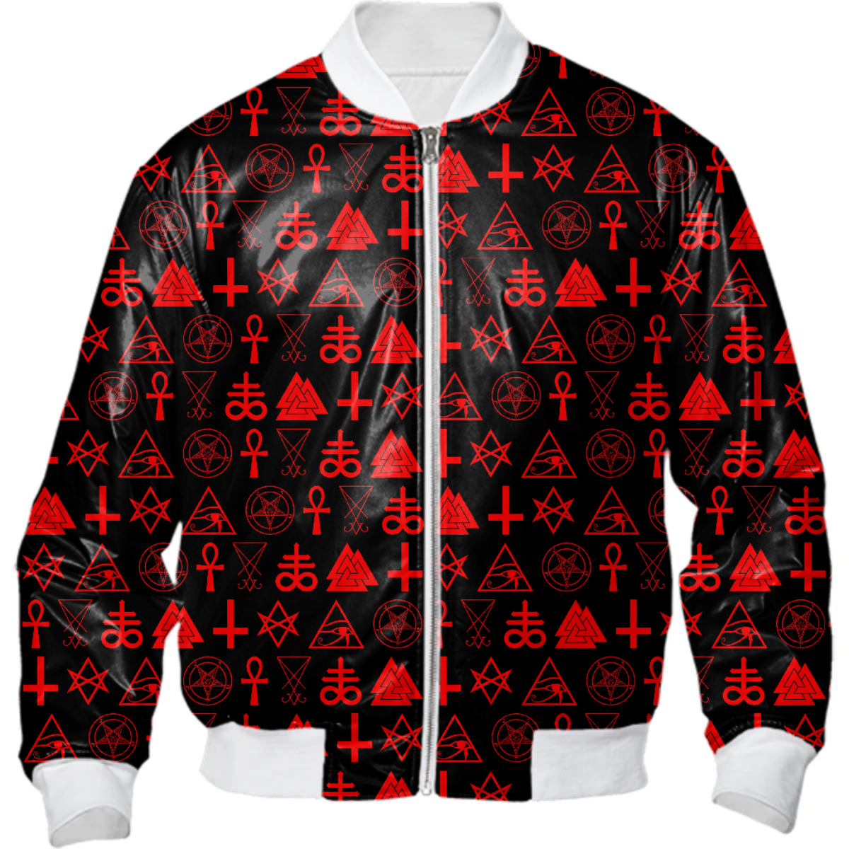 Light weight bombr jacket with your choice of white or black ribbing slight padding zip up front and side pockets. The inside is adorned with PAOM straps for swinging over your shoulders so you dont have to hold it.
