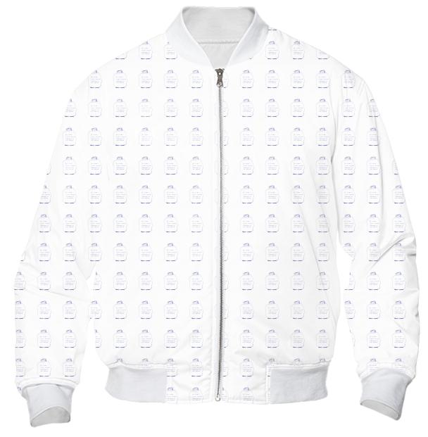 Light weight bombr jacket with your choice of white or black ribbing slight padding zip up front and side pockets. The inside is adorned with PAOM straps for swinging over your shoulders so you dont have to hold it.