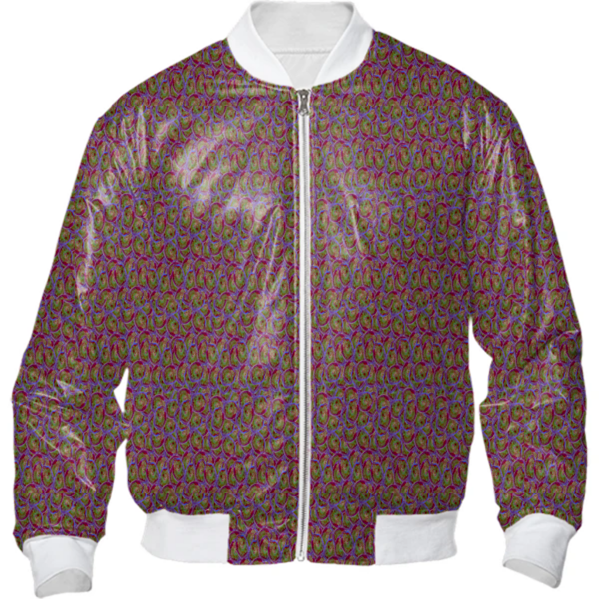 Light weight bombr jacket with your choice of white or black ribbing slight padding zip up front and side pockets. The inside is adorned with PAOM straps for swinging over your shoulders so you dont have to hold it.