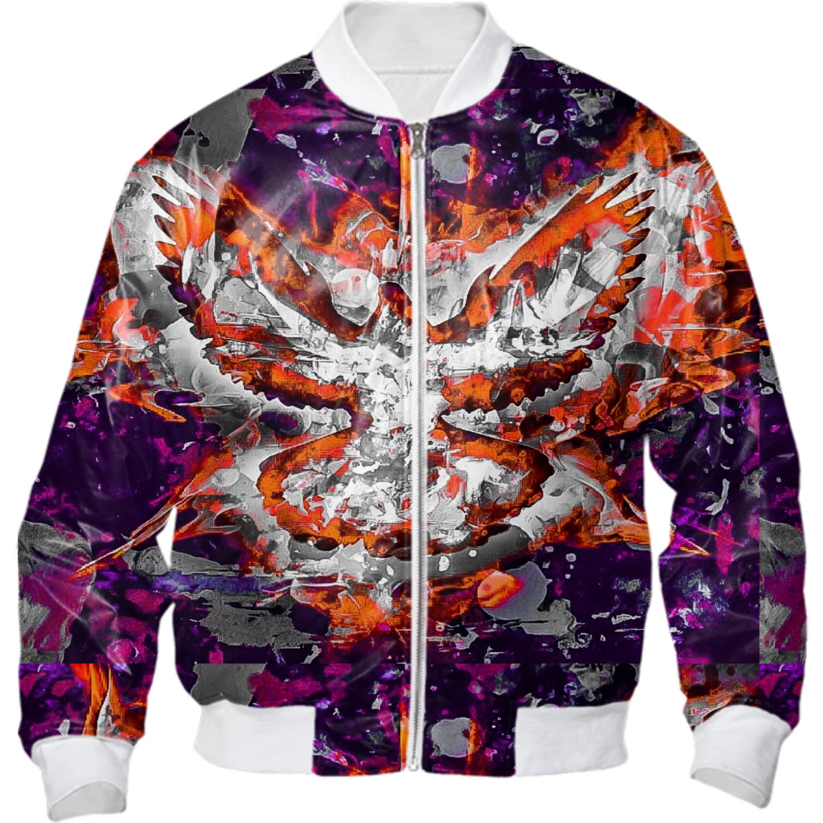 Light weight bombr jacket with your choice of white or black ribbing slight padding zip up front and side pockets. The inside is adorned with PAOM straps for swinging over your shoulders so you dont have to hold it.
