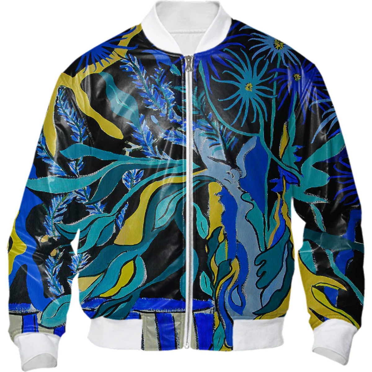 Light weight bombr jacket with your choice of white or black ribbing slight padding zip up front and side pockets. The inside is adorned with PAOM straps for swinging over your shoulders so you dont have to hold it.