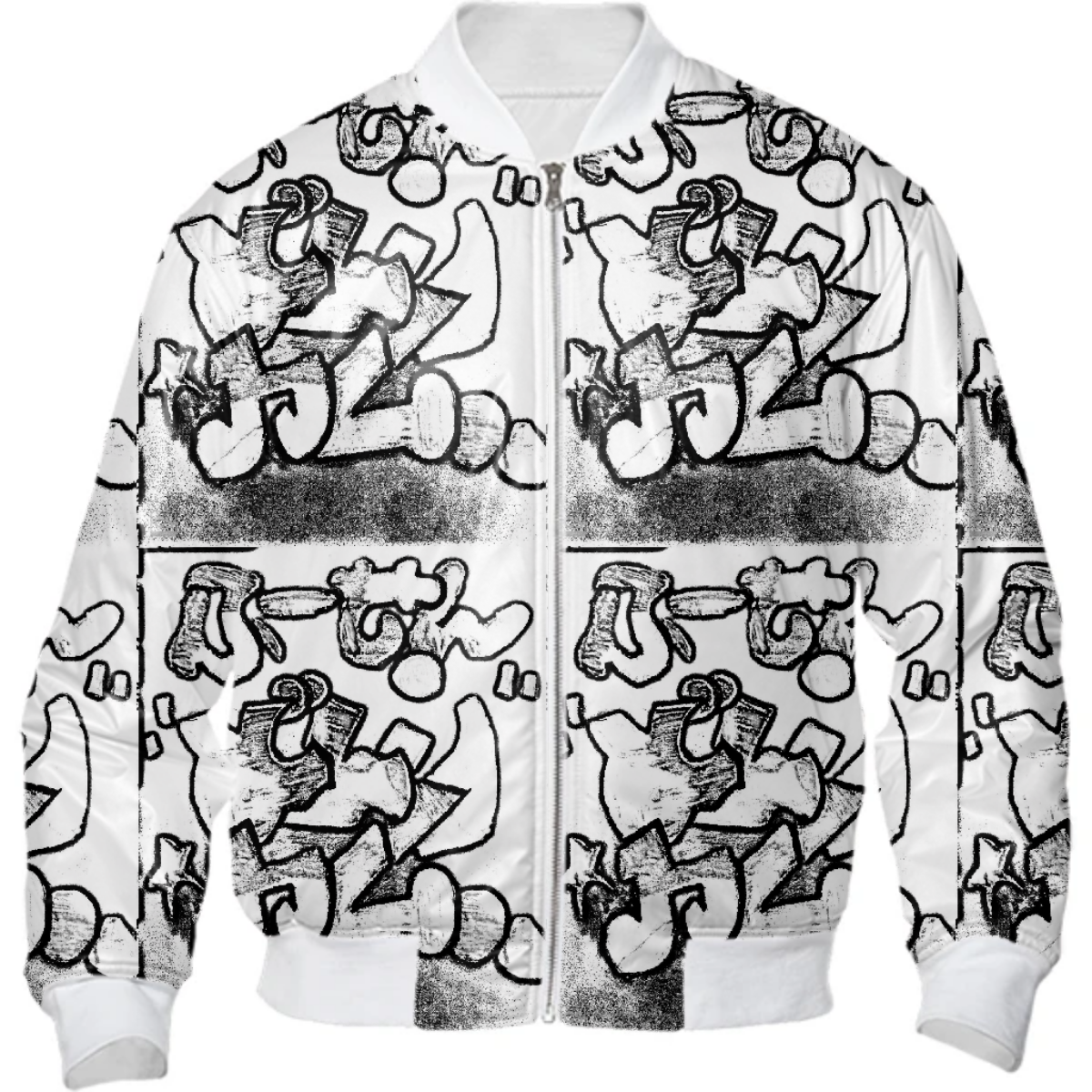 Light weight bombr jacket with your choice of white or black ribbing slight padding zip up front and side pockets. The inside is adorned with PAOM straps for swinging over your shoulders so you dont have to hold it.