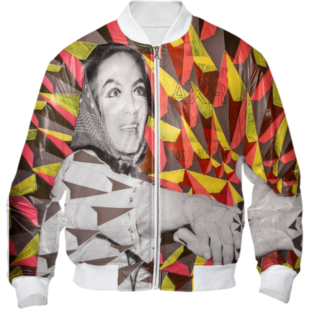 Light weight bombr jacket with your choice of white or black ribbing slight padding zip up front and side pockets. The inside is adorned with PAOM straps for swinging over your shoulders so you dont have to hold it.