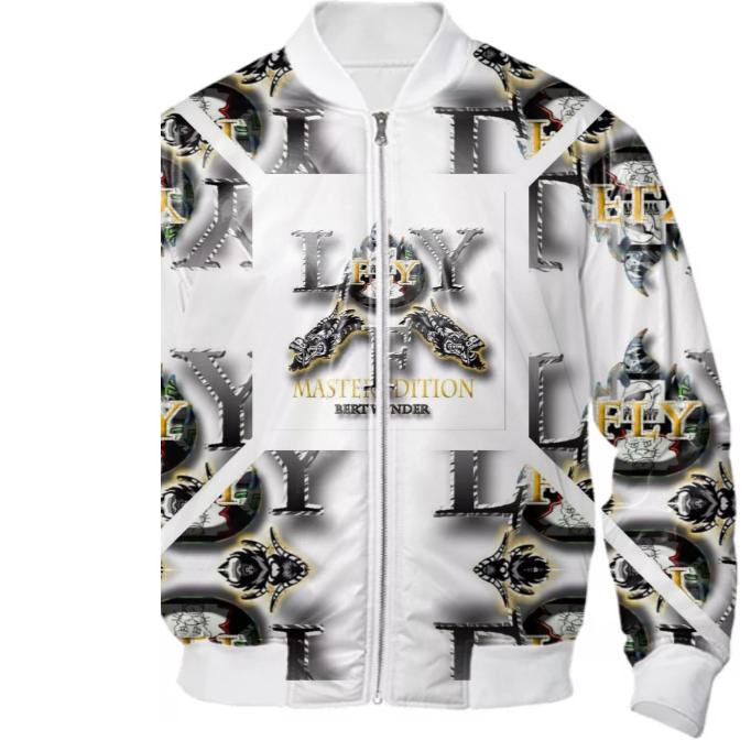 Light weight bombr jacket with your choice of white or black ribbing slight padding zip up front and side pockets. The inside is adorned with PAOM straps for swinging over your shoulders so you dont have to hold it.