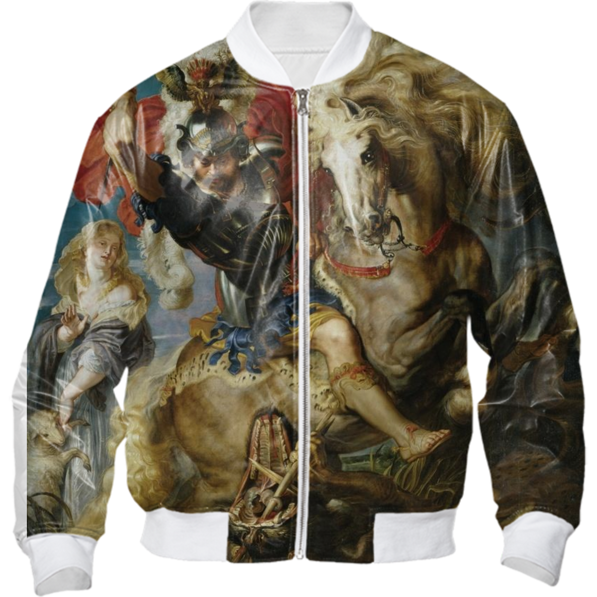 The uploaded file will be printed on the entire front and be mirrored on the back. Because of our cut and sew process some print elements on pockets seams and sleeves might not match up. For best results please upload a PNG or JPG with RGB color profile and dimensions of at least 40 inches width by 30 inches length. DPI can be as low as 72.