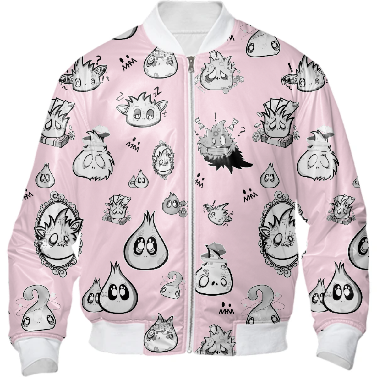 Light weight bombr jacket with your choice of white or black ribbing slight padding zip up front and side pockets. The inside is adorned with PAOM straps for swinging over your shoulders so you dont have to hold it.