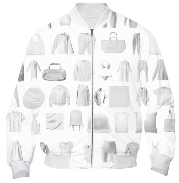 Light weight bombr jacket with your choice of white or black ribbing slight padding zip up front and side pockets. The inside is adorned with PAOM straps for swinging over your shoulders so you dont have to hold it.