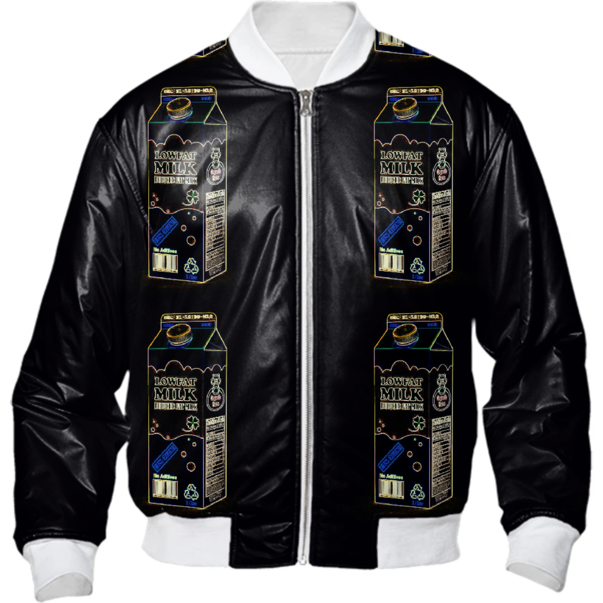 Light weight bombr jacket with your choice of white or black ribbing slight padding zip up front and side pockets. The inside is adorned with PAOM straps for swinging over your shoulders so you dont have to hold it.