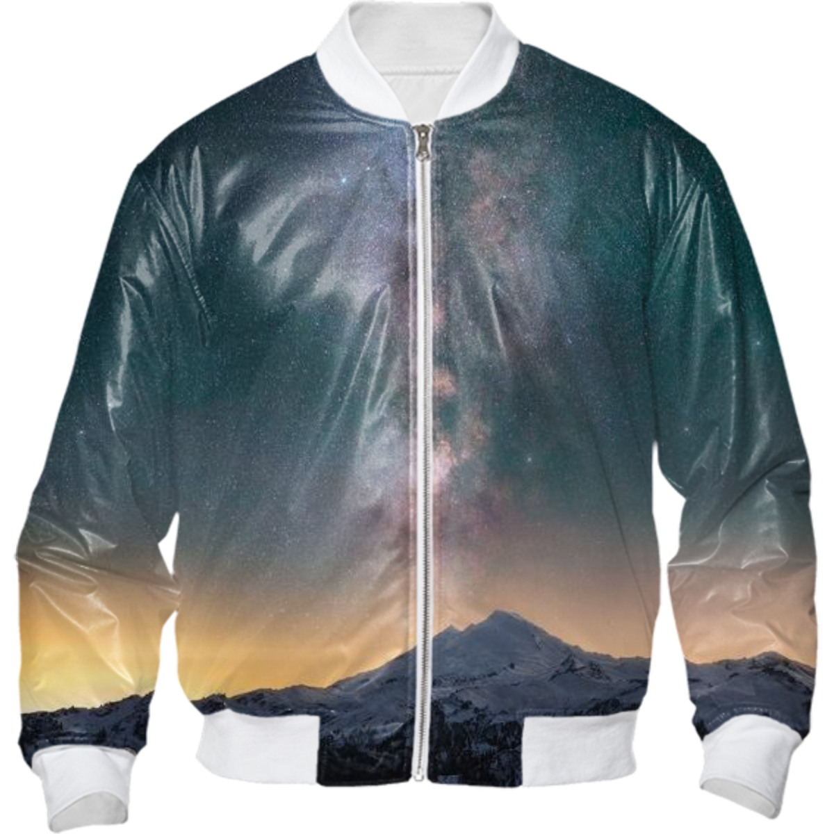Light weight bombr jacket with your choice of white or black ribbing slight padding zip up front and side pockets. The inside is adorned with PAOM straps for swinging over your shoulders so you dont have to hold it.