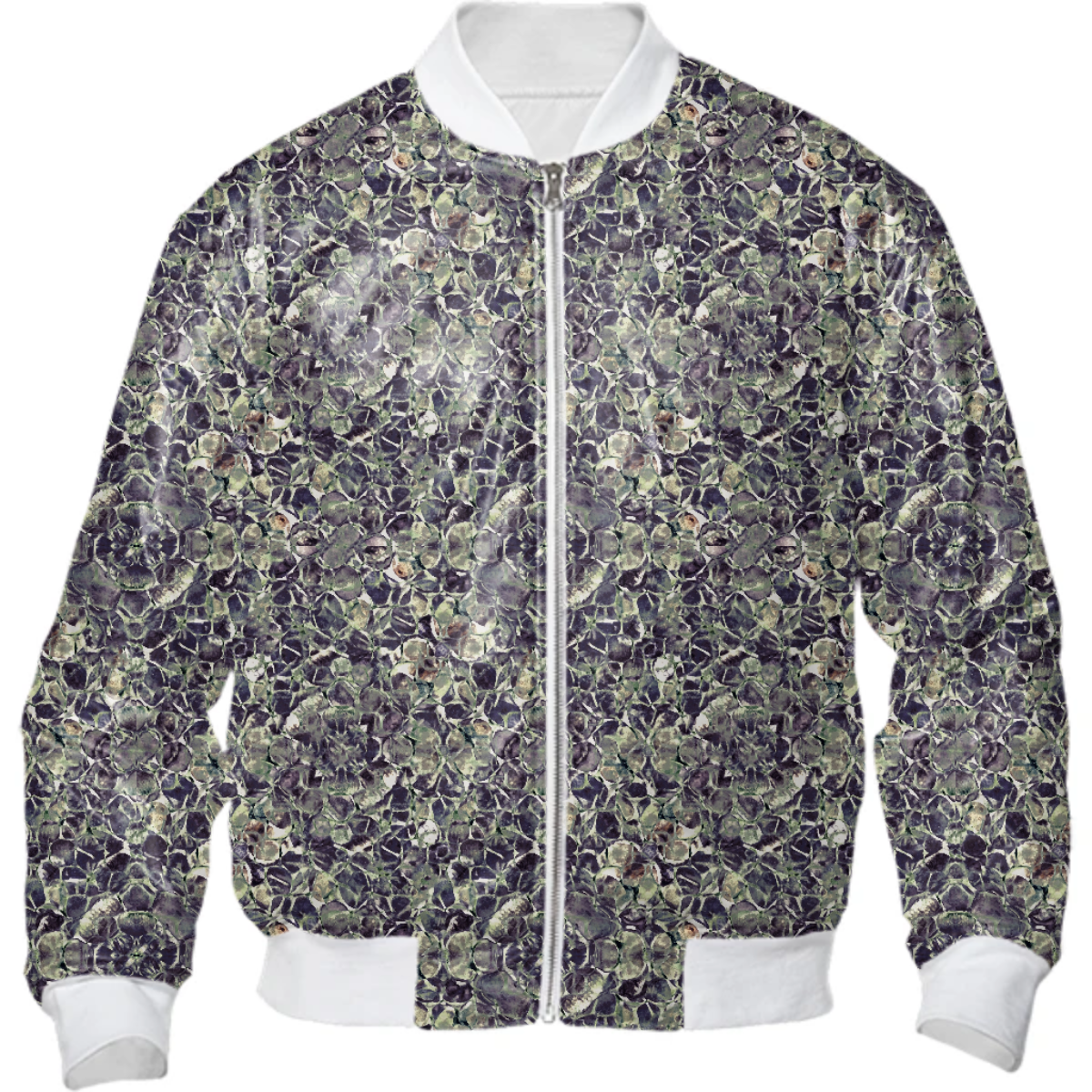 Light weight bombr jacket with your choice of white or black ribbing slight padding zip up front and side pockets. The inside is adorned with PAOM straps for swinging over your shoulders so you dont have to hold it.