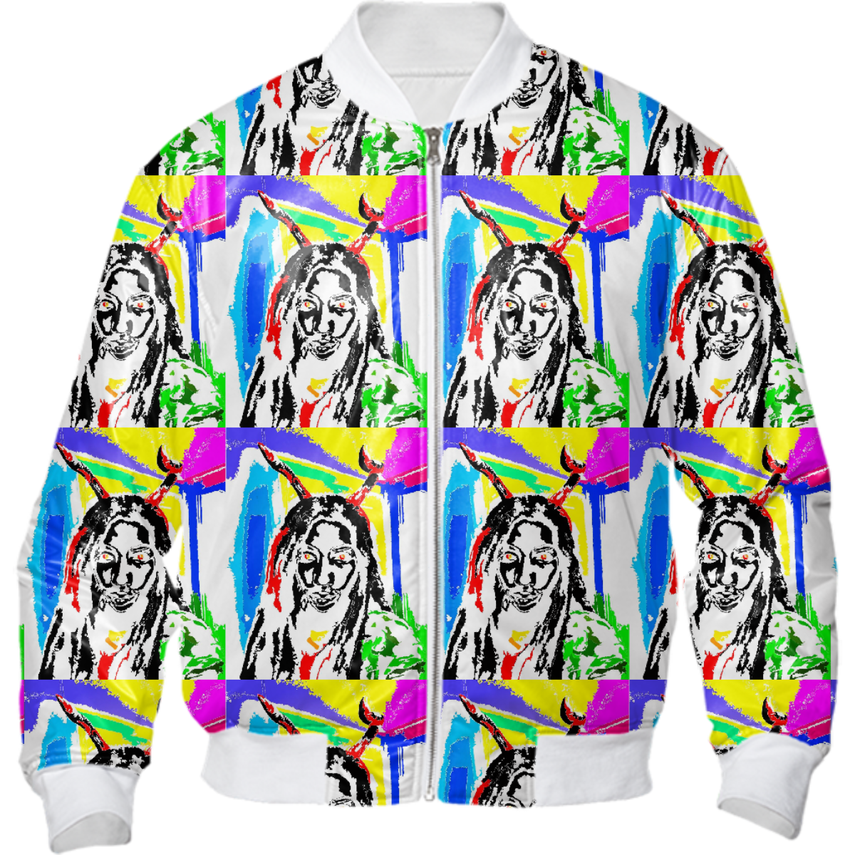 Light weight bombr jacket with your choice of white or black ribbing slight padding zip up front and side pockets. The inside is adorned with PAOM straps for swinging over your shoulders so you dont have to hold it.