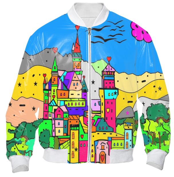Light weight bombr jacket with your choice of white or black ribbing slight padding zip up front and side pockets. The inside is adorned with PAOM straps for swinging over your shoulders so you dont have to hold it.