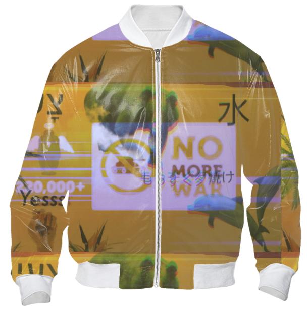 Light weight bombr jacket with your choice of white or black ribbing slight padding zip up front and side pockets. The inside is adorned with PAOM straps for swinging over your shoulders so you dont have to hold it.
