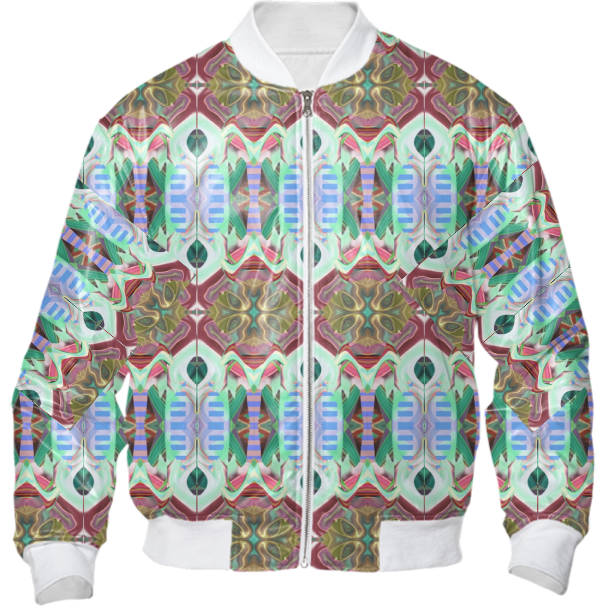Light weight bombr jacket with your choice of white or black ribbing slight padding zip up front and side pockets. The inside is adorned with PAOM straps for swinging over your shoulders so you dont have to hold it.