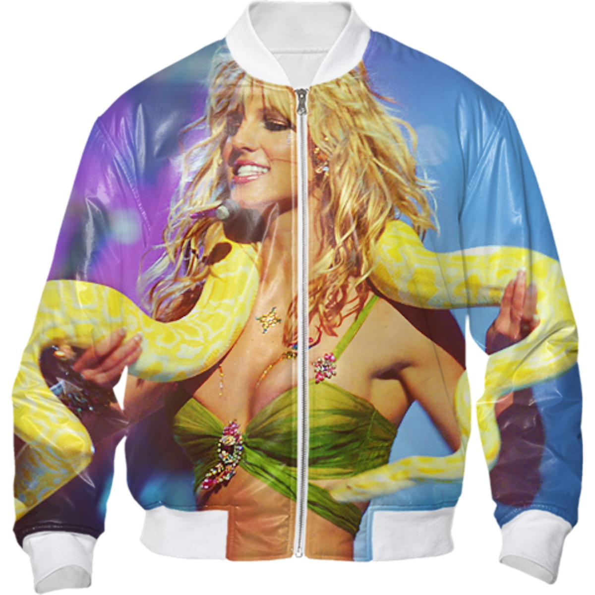 Light weight bombr jacket with your choice of white or black ribbing slight padding zip up front and side pockets. The inside is adorned with PAOM straps for swinging over your shoulders so you dont have to hold it.