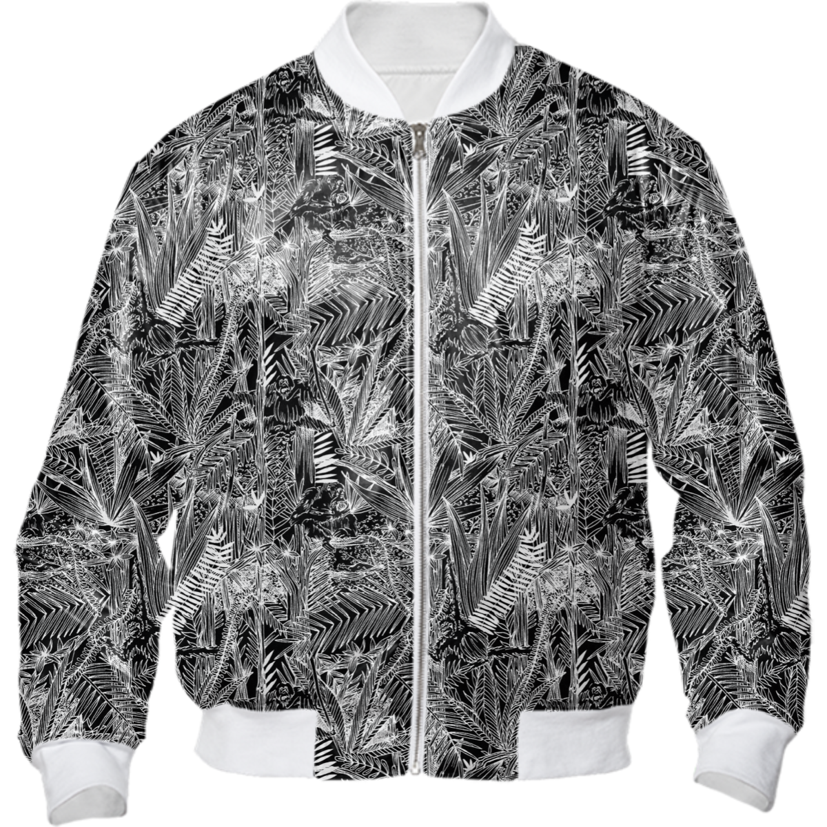 Light weight bombr jacket with your choice of white or black ribbing slight padding zip up front and side pockets. The inside is adorned with PAOM straps for swinging over your shoulders so you dont have to hold it.
