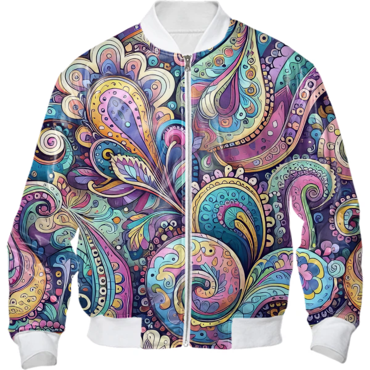 Light weight bombr jacket with your choice of white or black ribbing slight padding zip up front and side pockets. The inside is adorned with PAOM straps for swinging over your shoulders so you dont have to hold it.