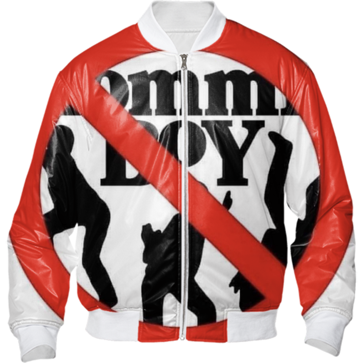 Light weight bombr jacket with your choice of white or black ribbing slight padding zip up front and side pockets. The inside is adorned with PAOM straps for swinging over your shoulders so you dont have to hold it.
