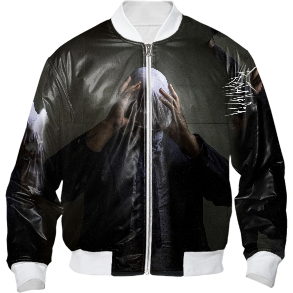 Light weight bombr jacket with your choice of white or black ribbing slight padding zip up front and side pockets. The inside is adorned with PAOM straps for swinging over your shoulders so you dont have to hold it.