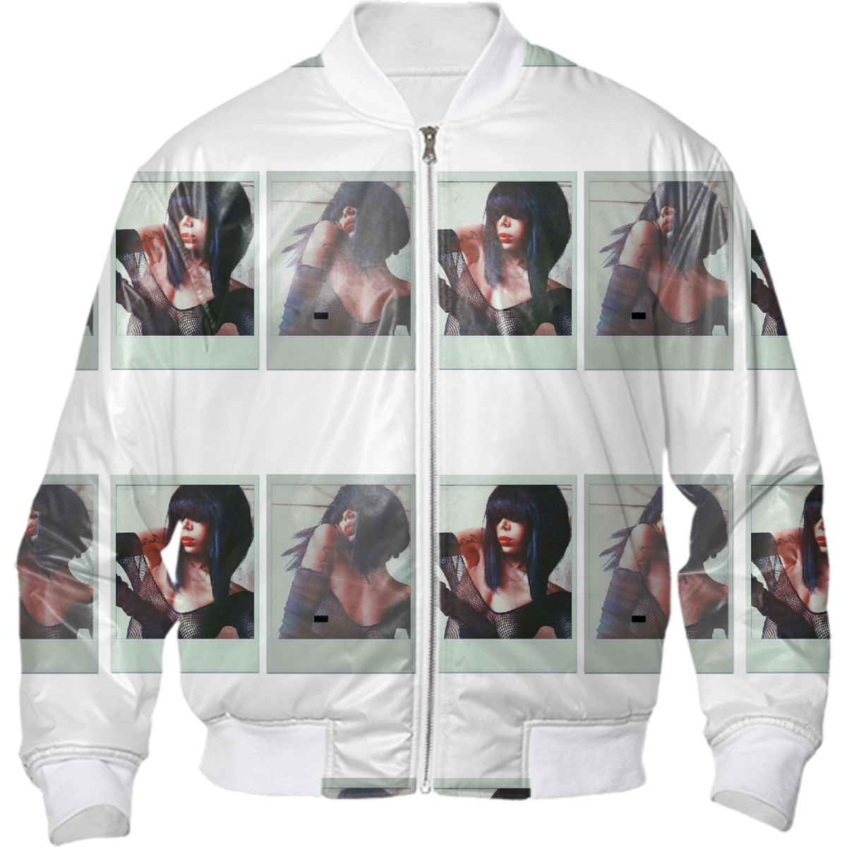 Light weight bombr jacket with your choice of white or black ribbing slight padding zip up front and side pockets. The inside is adorned with PAOM straps for swinging over your shoulders so you dont have to hold it.