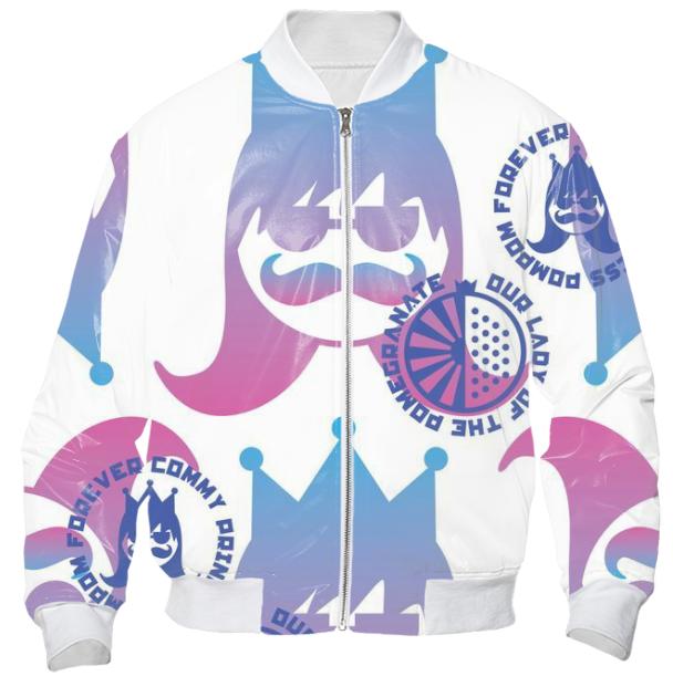 Light weight bombr jacket with your choice of white or black ribbing slight padding zip up front and side pockets. The inside is adorned with PAOM straps for swinging over your shoulders so you dont have to hold it.