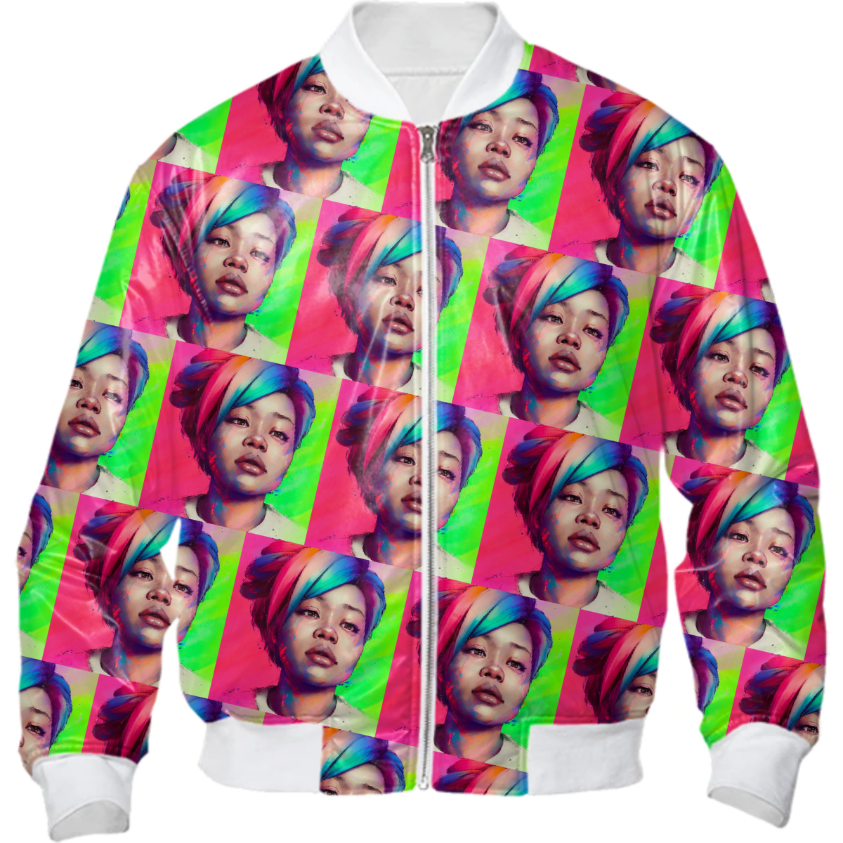 Light weight bombr jacket with your choice of white or black ribbing slight padding zip up front and side pockets. The inside is adorned with PAOM straps for swinging over your shoulders so you dont have to hold it.