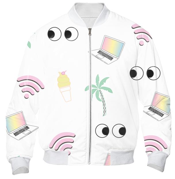 Light weight bombr jacket with your choice of white or black ribbing slight padding zip up front and side pockets. The inside is adorned with PAOM straps for swinging over your shoulders so you dont have to hold it.