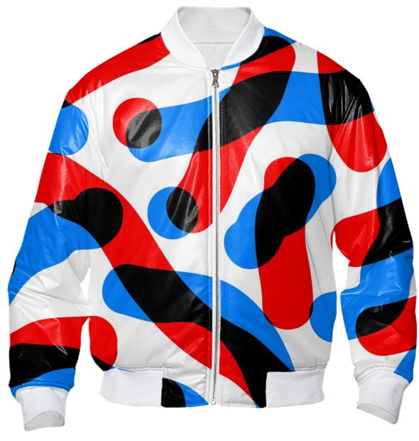 Light weight bombr jacket with your choice of white or black ribbing slight padding zip up front and side pockets. The inside is adorned with PAOM straps for swinging over your shoulders so you dont have to hold it.