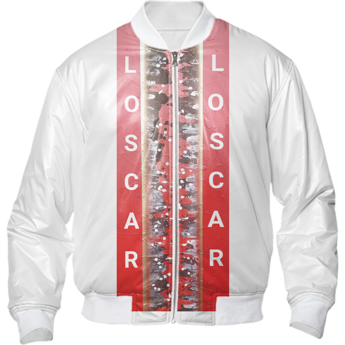 Light weight bombr jacket with your choice of white or black ribbing slight padding zip up front and side pockets. The inside is adorned with PAOM straps for swinging over your shoulders so you dont have to hold it.