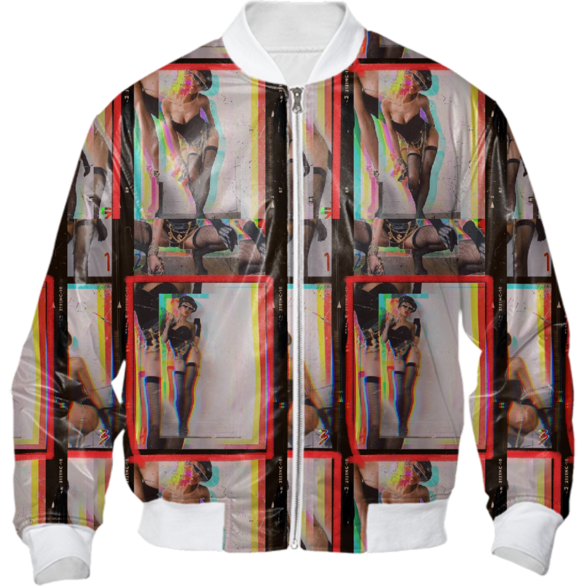 Light weight bombr jacket with your choice of white or black ribbing slight padding zip up front and side pockets. The inside is adorned with PAOM straps for swinging over your shoulders so you dont have to hold it.