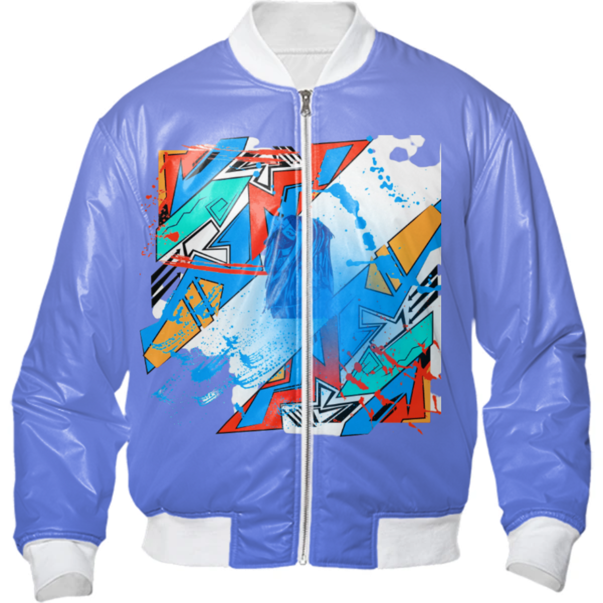 Light weight bombr jacket with your choice of white or black ribbing slight padding zip up front and side pockets. The inside is adorned with PAOM straps for swinging over your shoulders so you dont have to hold it.