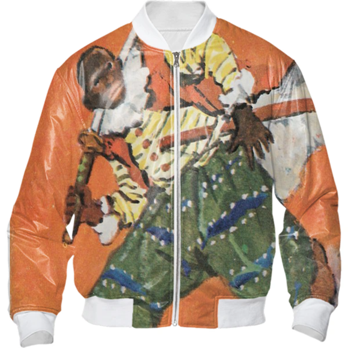 Light weight bombr jacket with your choice of white or black ribbing slight padding zip up front and side pockets. The inside is adorned with PAOM straps for swinging over your shoulders so you dont have to hold it.