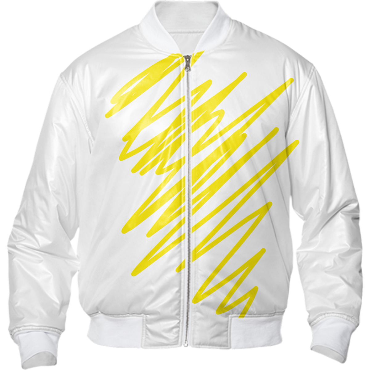 Light weight bombr jacket with your choice of white or black ribbing slight padding zip up front and side pockets. The inside is adorned with PAOM straps for swinging over your shoulders so you dont have to hold it.