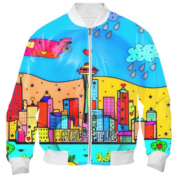 Light weight bombr jacket with your choice of white or black ribbing slight padding zip up front and side pockets. The inside is adorned with PAOM straps for swinging over your shoulders so you dont have to hold it.