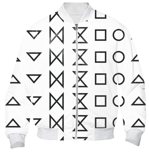 Light weight bombr jacket with your choice of white or black ribbing slight padding zip up front and side pockets. The inside is adorned with PAOM straps for swinging over your shoulders so you dont have to hold it.