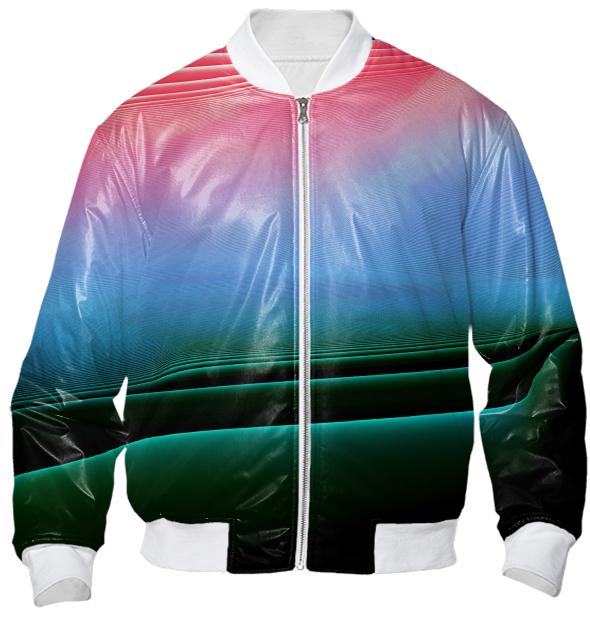 Light weight bombr jacket with your choice of white or black ribbing slight padding zip up front and side pockets. The inside is adorned with PAOM straps for swinging over your shoulders so you dont have to hold it.
