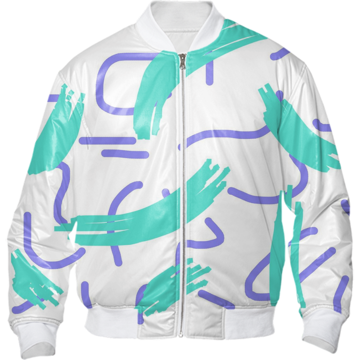 Light weight bombr jacket with your choice of white or black ribbing slight padding zip up front and side pockets. The inside is adorned with PAOM straps for swinging over your shoulders so you dont have to hold it.