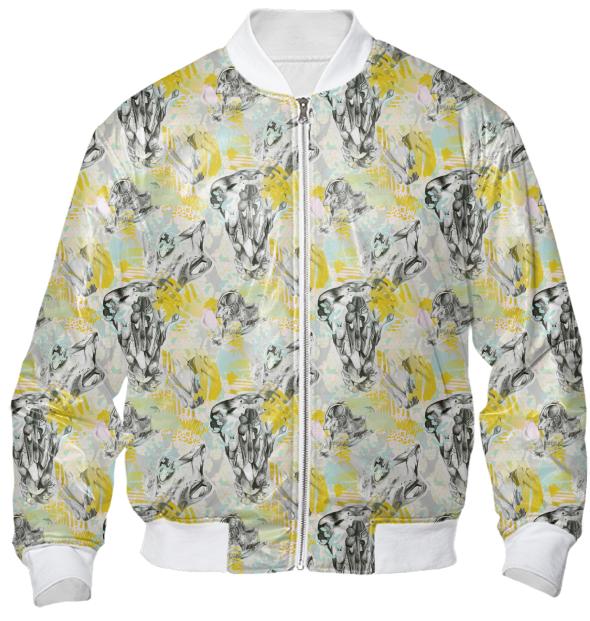 Light weight bombr jacket with your choice of white or black ribbing slight padding zip up front and side pockets. The inside is adorned with PAOM straps for swinging over your shoulders so you dont have to hold it.