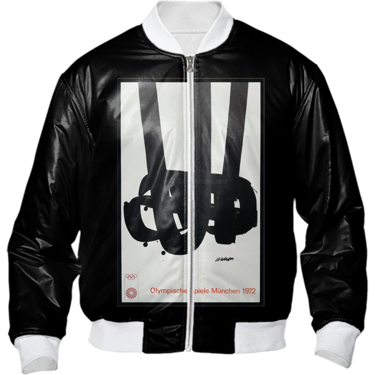 Light weight bombr jacket with your choice of white or black ribbing slight padding zip up front and side pockets. The inside is adorned with PAOM straps for swinging over your shoulders so you dont have to hold it.