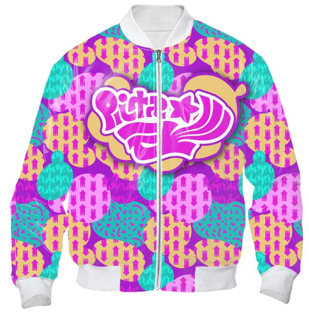 Light weight bombr jacket with your choice of white or black ribbing slight padding zip up front and side pockets. The inside is adorned with PAOM straps for swinging over your shoulders so you dont have to hold it.
