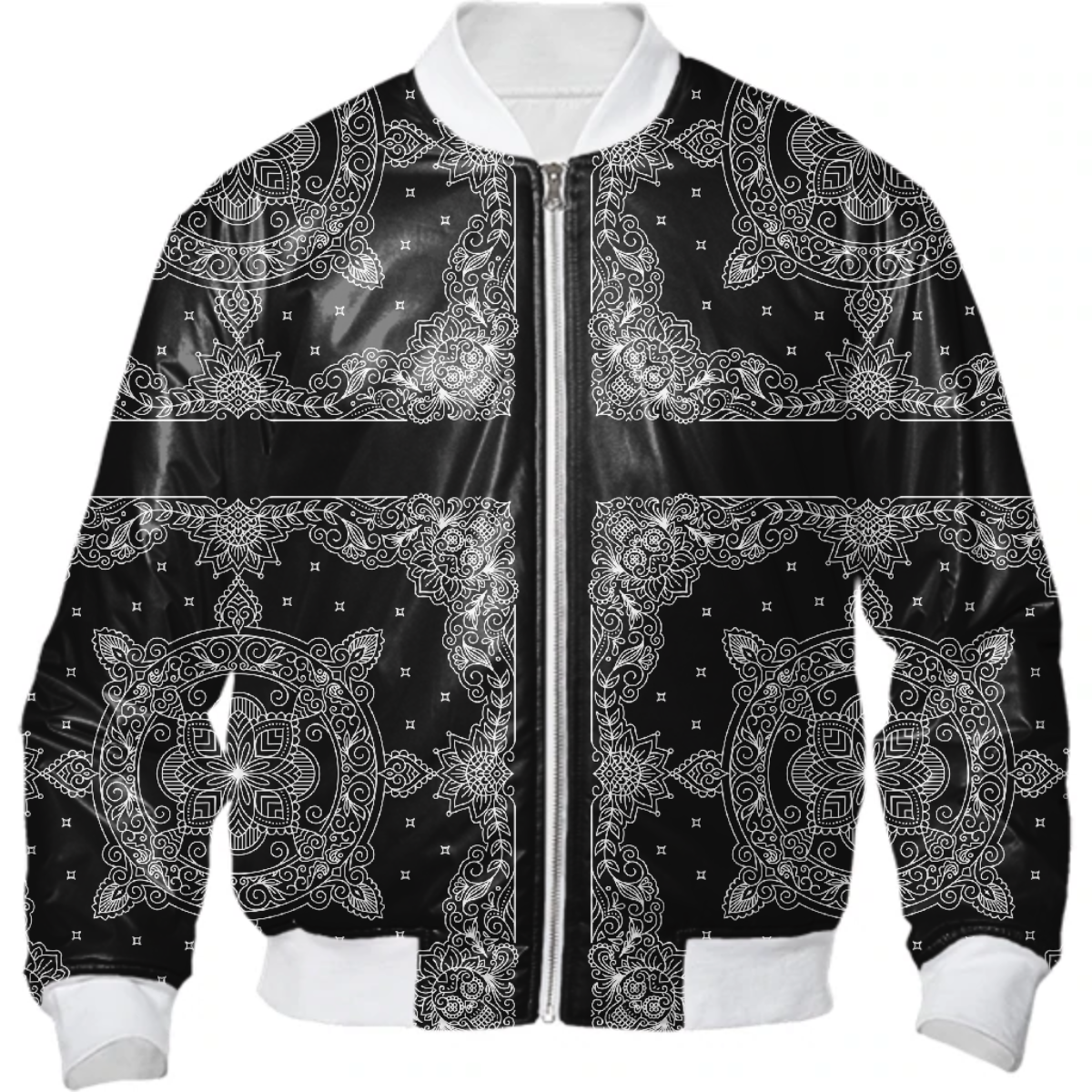 Light weight bombr jacket with your choice of white or black ribbing slight padding zip up front and side pockets. The inside is adorned with PAOM straps for swinging over your shoulders so you dont have to hold it.