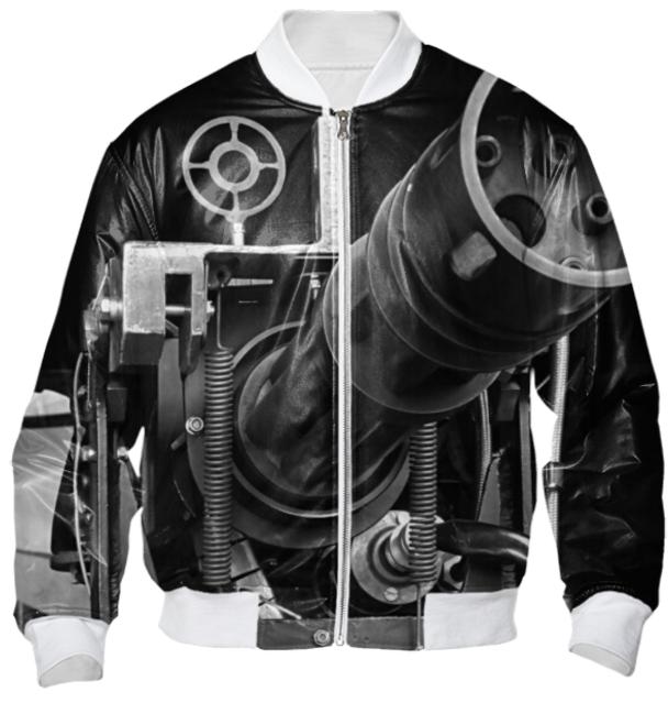Light weight bombr jacket with your choice of white or black ribbing slight padding zip up front and side pockets. The inside is adorned with PAOM straps for swinging over your shoulders so you dont have to hold it.
